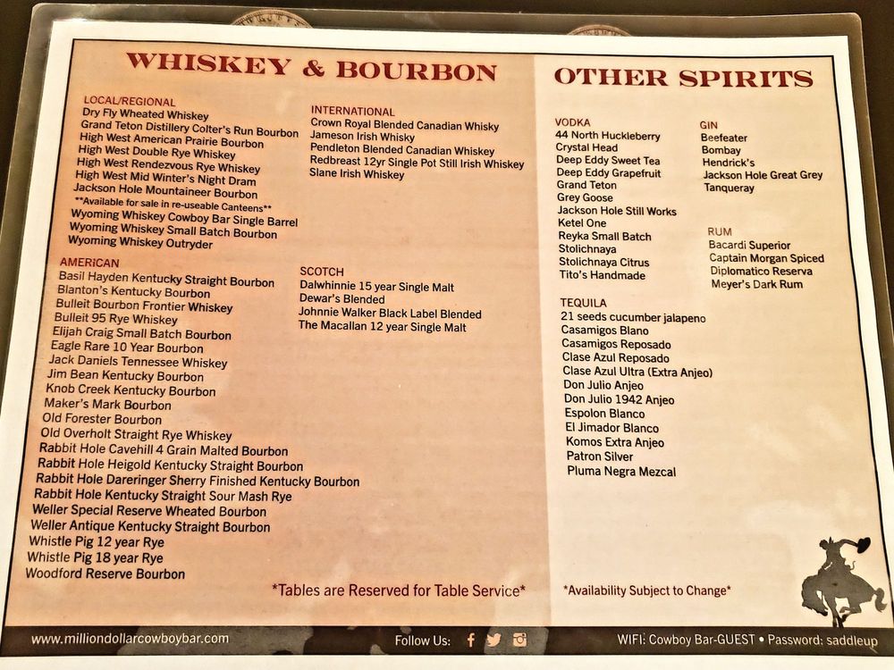 Million Dollar Cowboy Bar Menu (2025 Update)